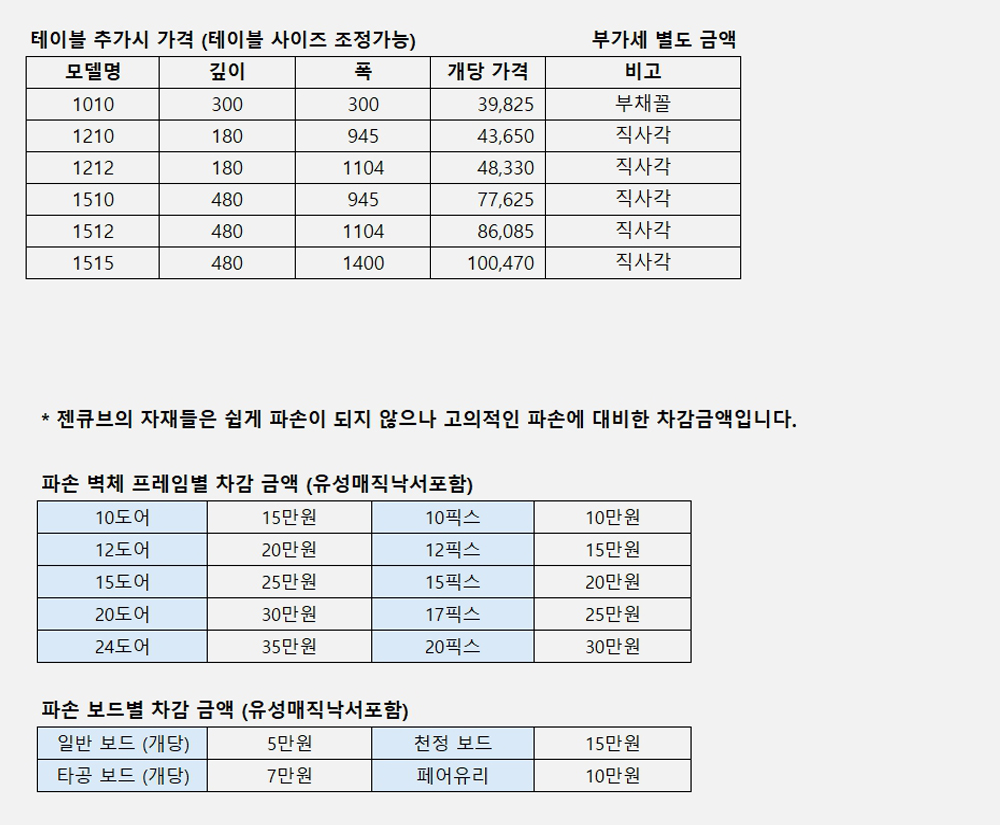 ¡ã Å×À̺íÀÇ ¸ðµ¨º° °¡°Ý (ºÎ°¡¼¼ º°µµ)