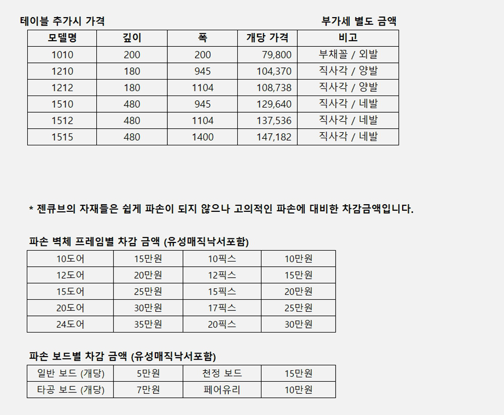 ¡ã Å×À̺íÀÇ ¸ðµ¨º° °¡°Ý (ºÎ°¡¼¼ º°µµ)